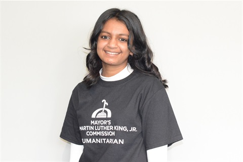Volunteering is important to her and to date she has accumulated almost 2,000 hours of community service. Harinee’s actions mirror many of the same ideals that MLK Jr. taught us. She has learned that even the smallest little gesture such as donating masks to the homeless or making a hand written card to appreciate staff can make a positive impact in their life.
