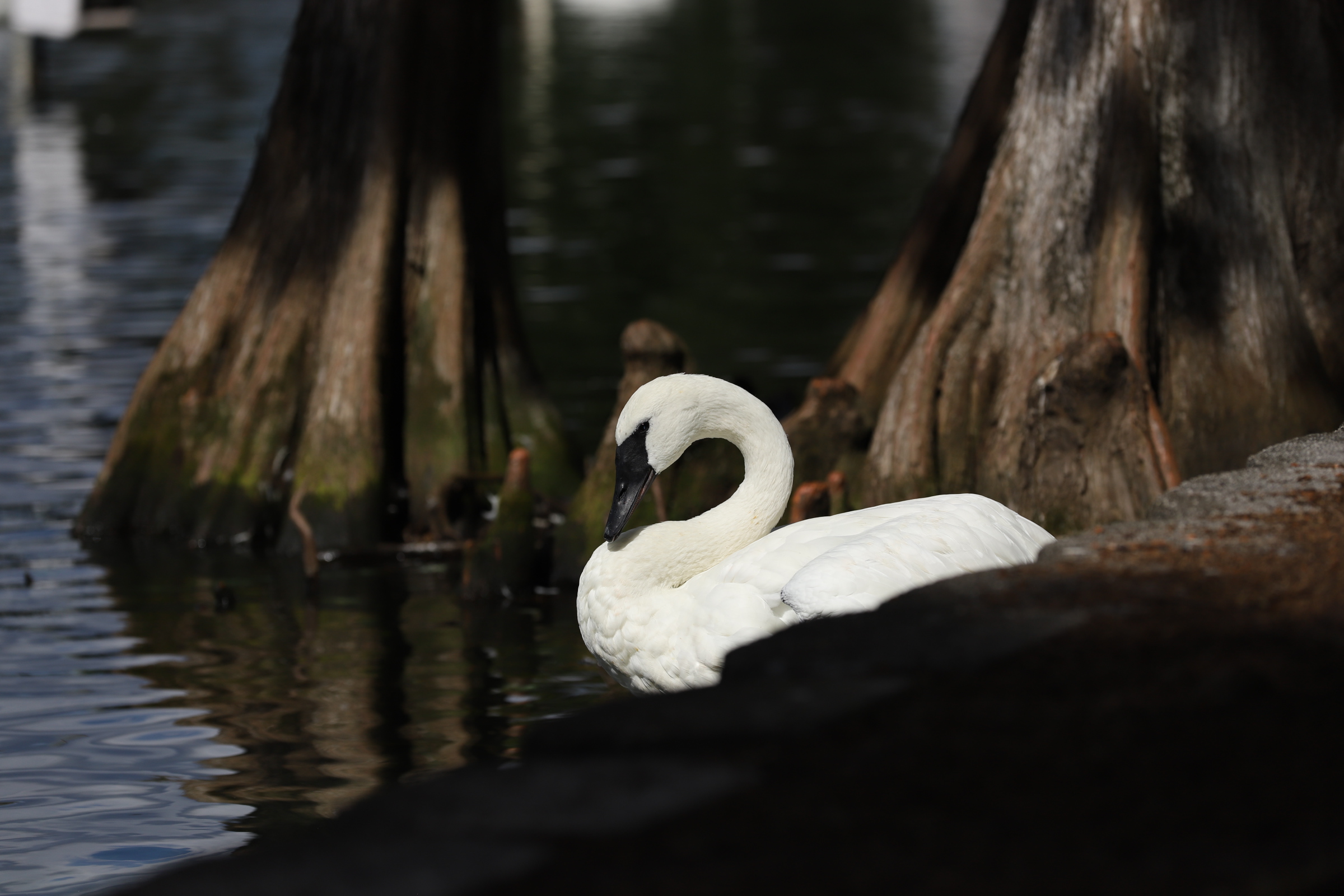 The swans have access to supplemental food through feeders in the lake and on the shore. They can also be fed lettuce, spinach, and duck pellet food found in the parks. Any other foods could be detrimental to their health, ultimately making the swans ill.